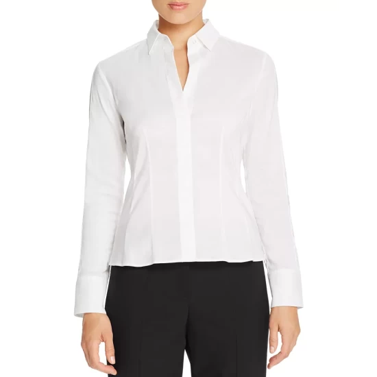 - Point collar with button closure, long sleeves with button cuffs