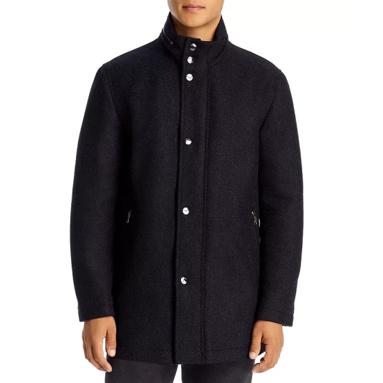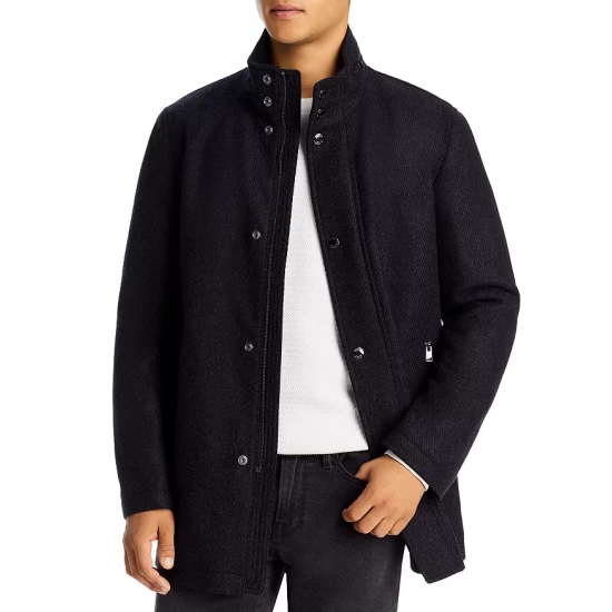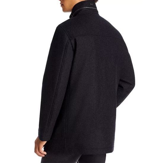 - Stand collar with zip accent and logo trim