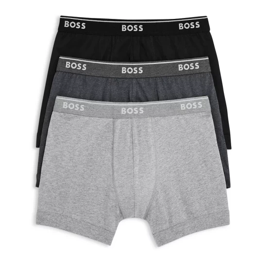 - Pack of three pairs of solid boxer briefs in assorted colors