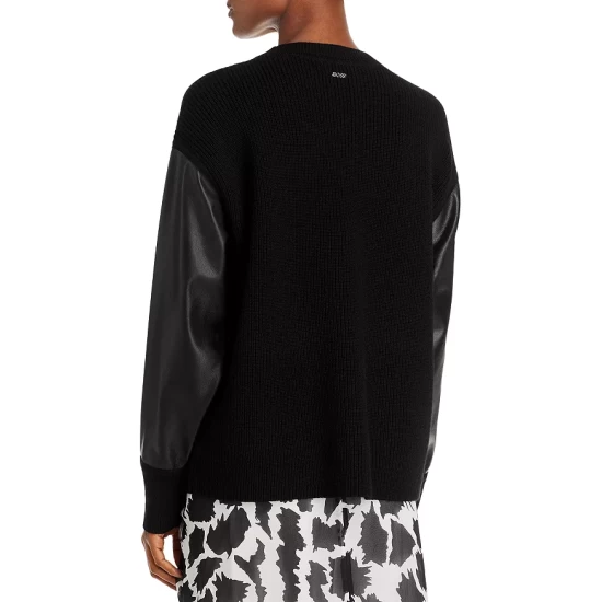 - Virgin wool; sleeve: polyester; contrast: polyurethane