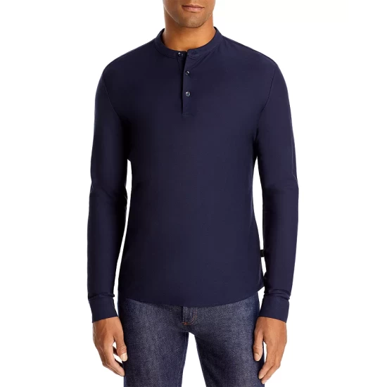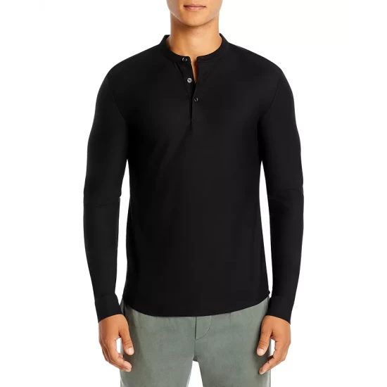 - Crewneck with henley button placket