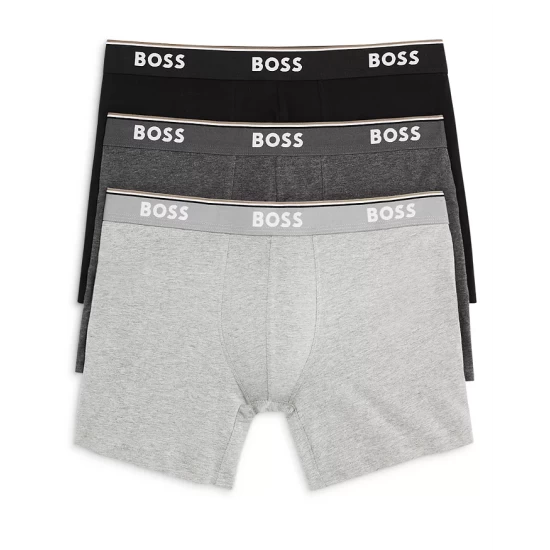 - Pack of three pairs of solid boxer briefs in assorted colors