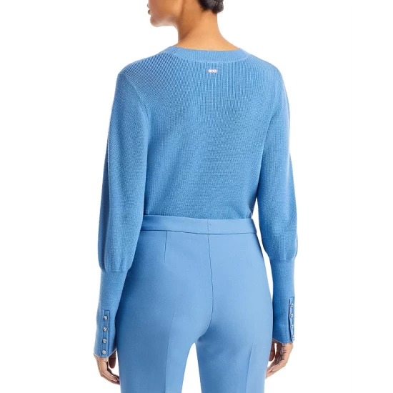 - Extended rib-knit cuffs with button closures